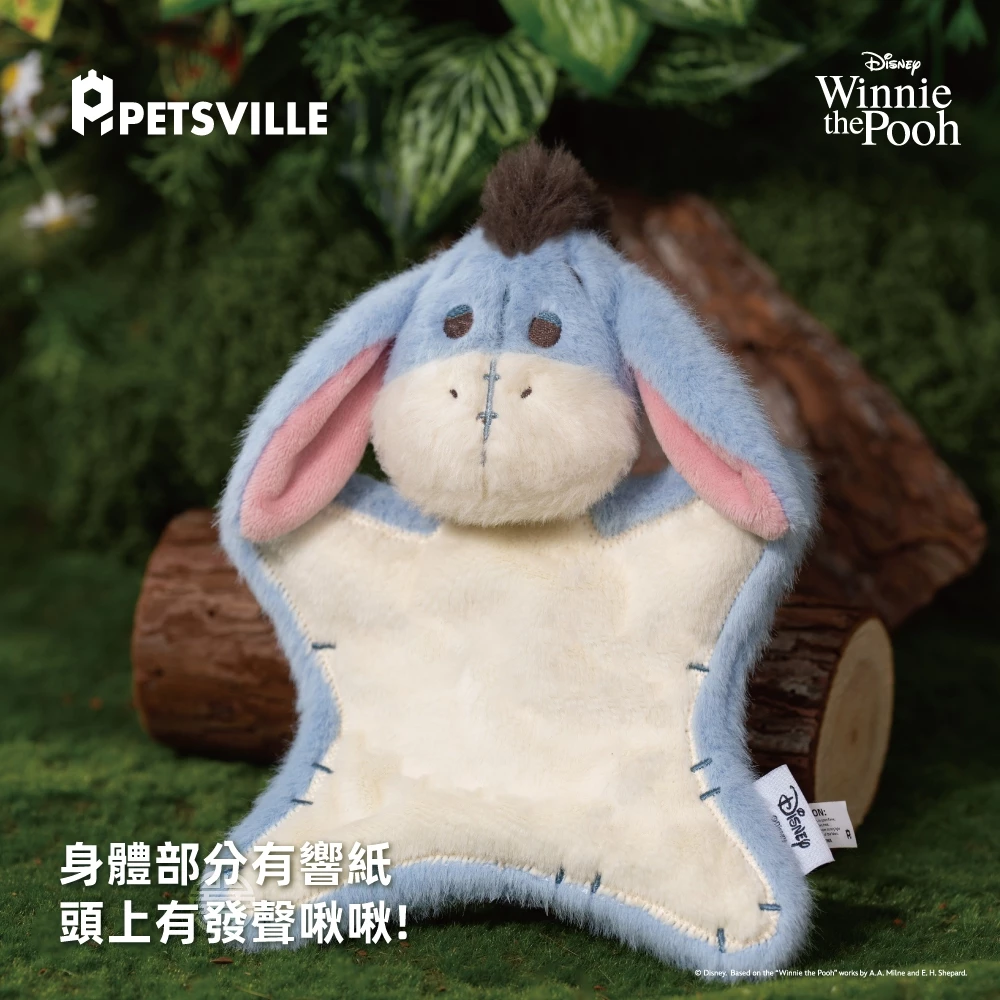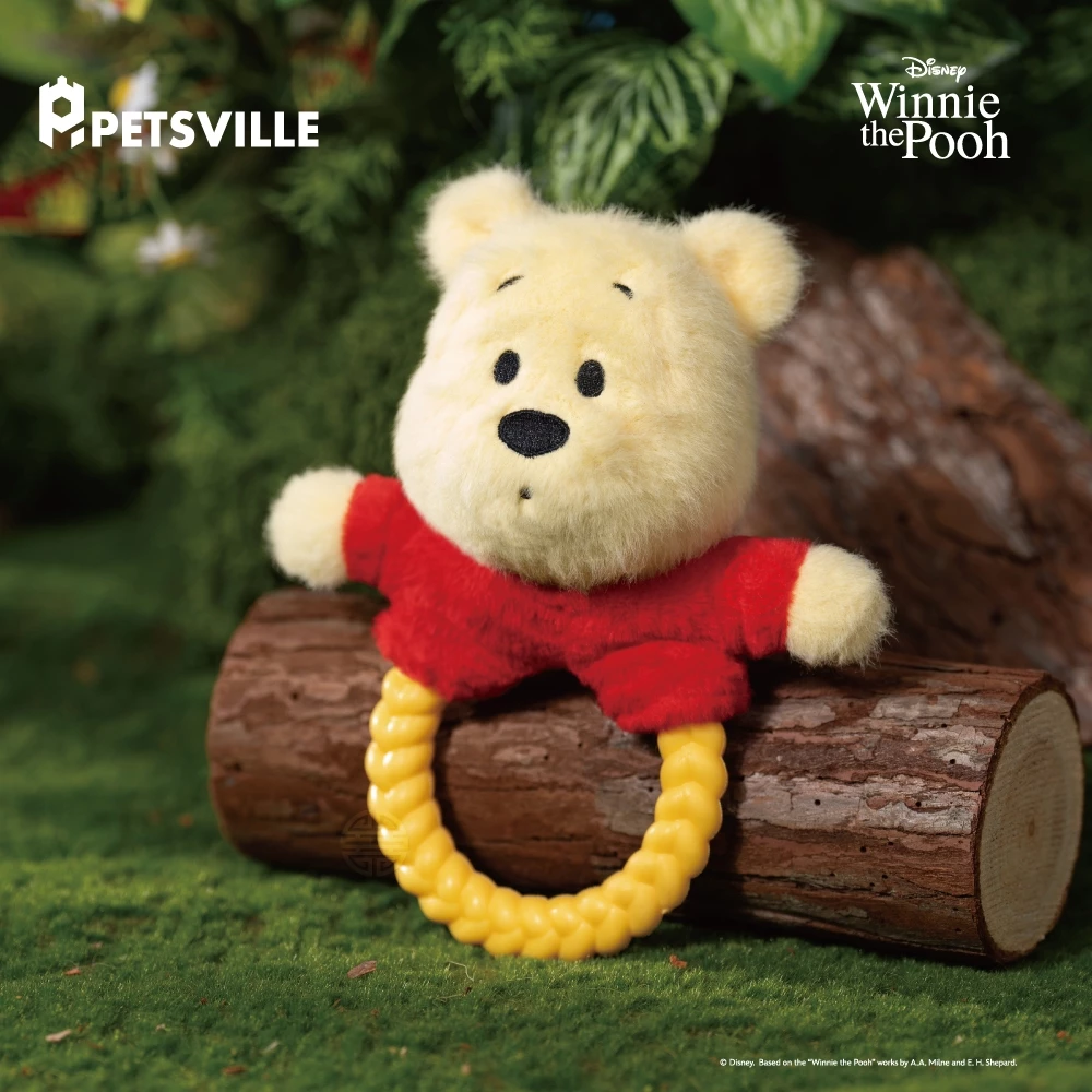 「Disney 小熊維尼寵物發聲玩偶」正版授權,內藏發聲氣囊,柔軟絨毛設計,適合狗狗與貓咪啃咬、互動遊戲與陪伴。多款角色可選,療癒造型兼具耐玩與安全,讓毛孩快樂釋放精力!